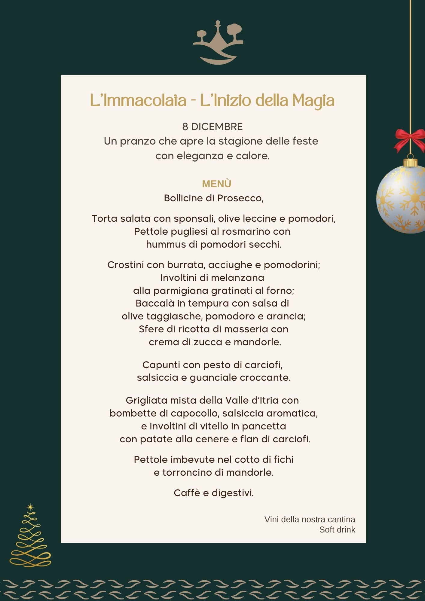 - pranzo dell’Immacolata (bevande incluse) con musica di sottofondo